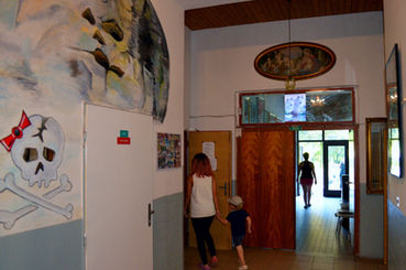 V 1.patře dětský koutek s velkým množstvím stavebnic Žako a Lori, knihovna, laboratorium, rukodělná dílna s velkoplošnou projekcí.